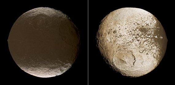 Japetus sieht auf Bildern der Raumsonde Cassini aus wie eine Walnuss. Das liegt an dem Bergrücken, der sich bis auf wenige Breitengrade genau auf dem geografischen Äquator befindet.